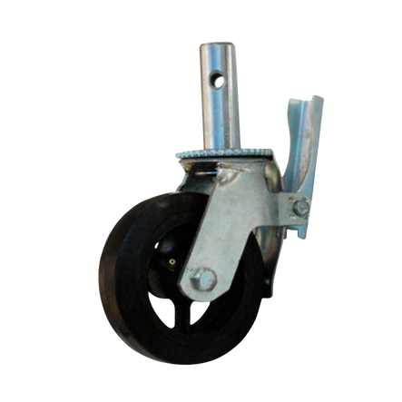 Produzidos em ferro fundido e revestido de borracha, garante a fácil locomoção da torre. (lembrando que nunca se deve locomover a torre com operários sobre a mesma).