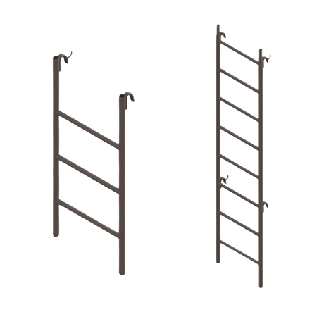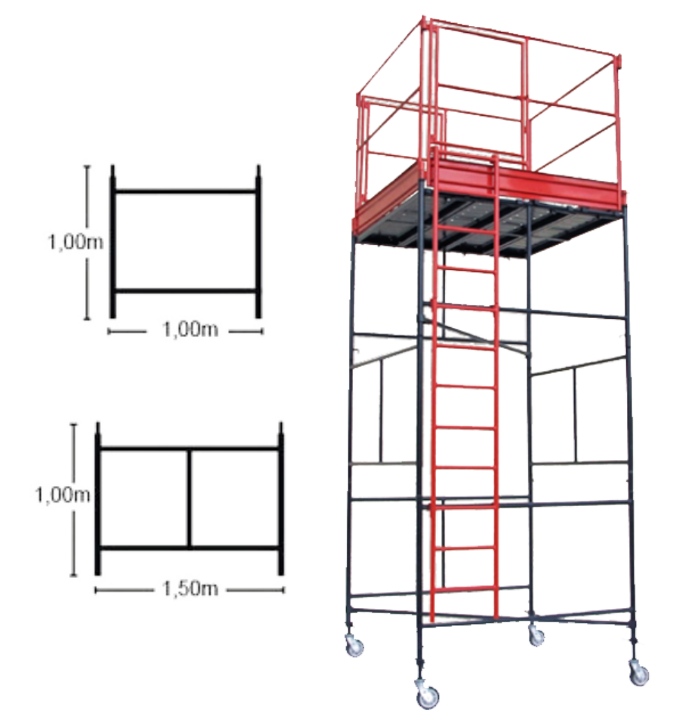 Escada nas medidas de 1 E 2 metros de altura cada peça. Este acessório é usado na torre facilitando o acesso do trabalhador até o andar que irá trabalhar.